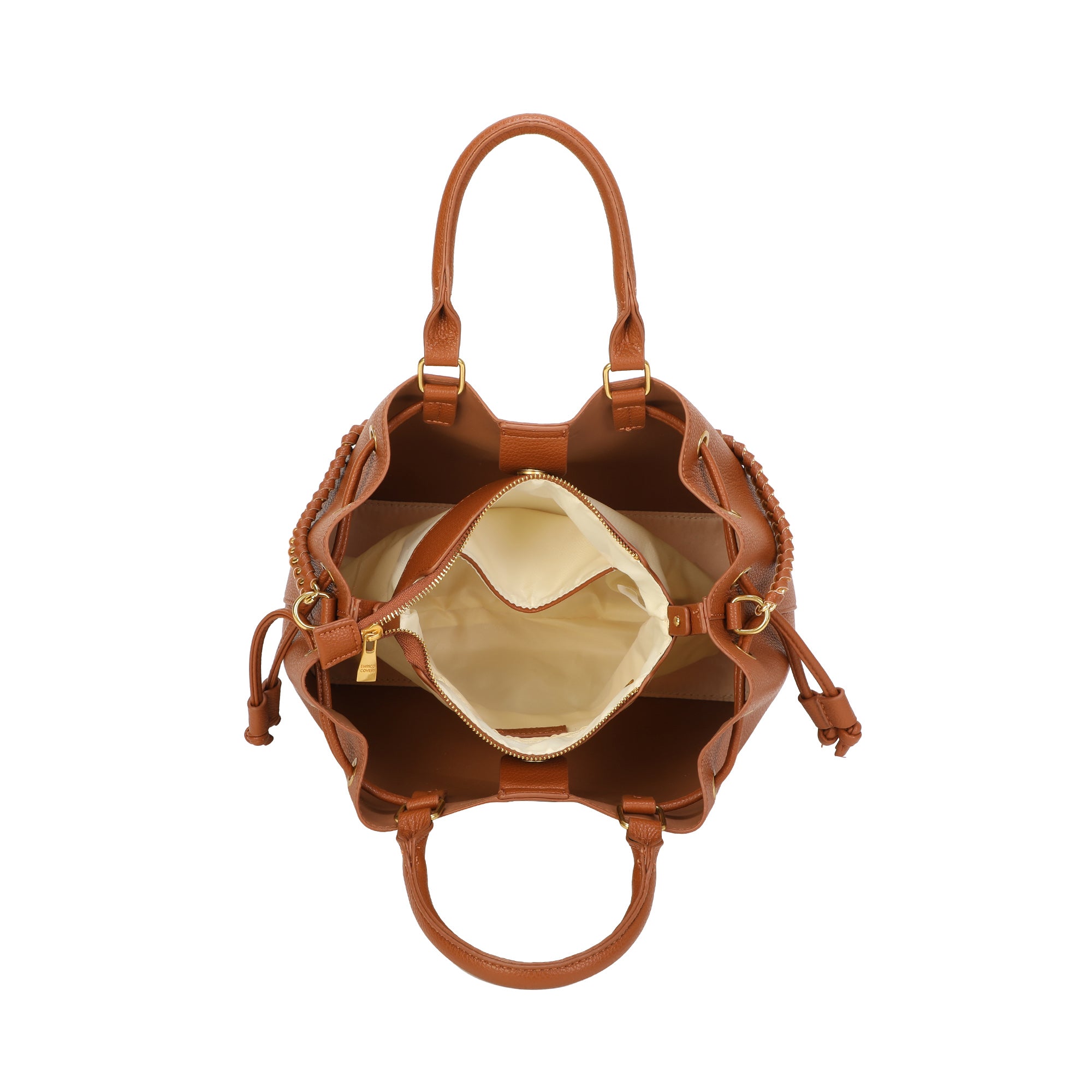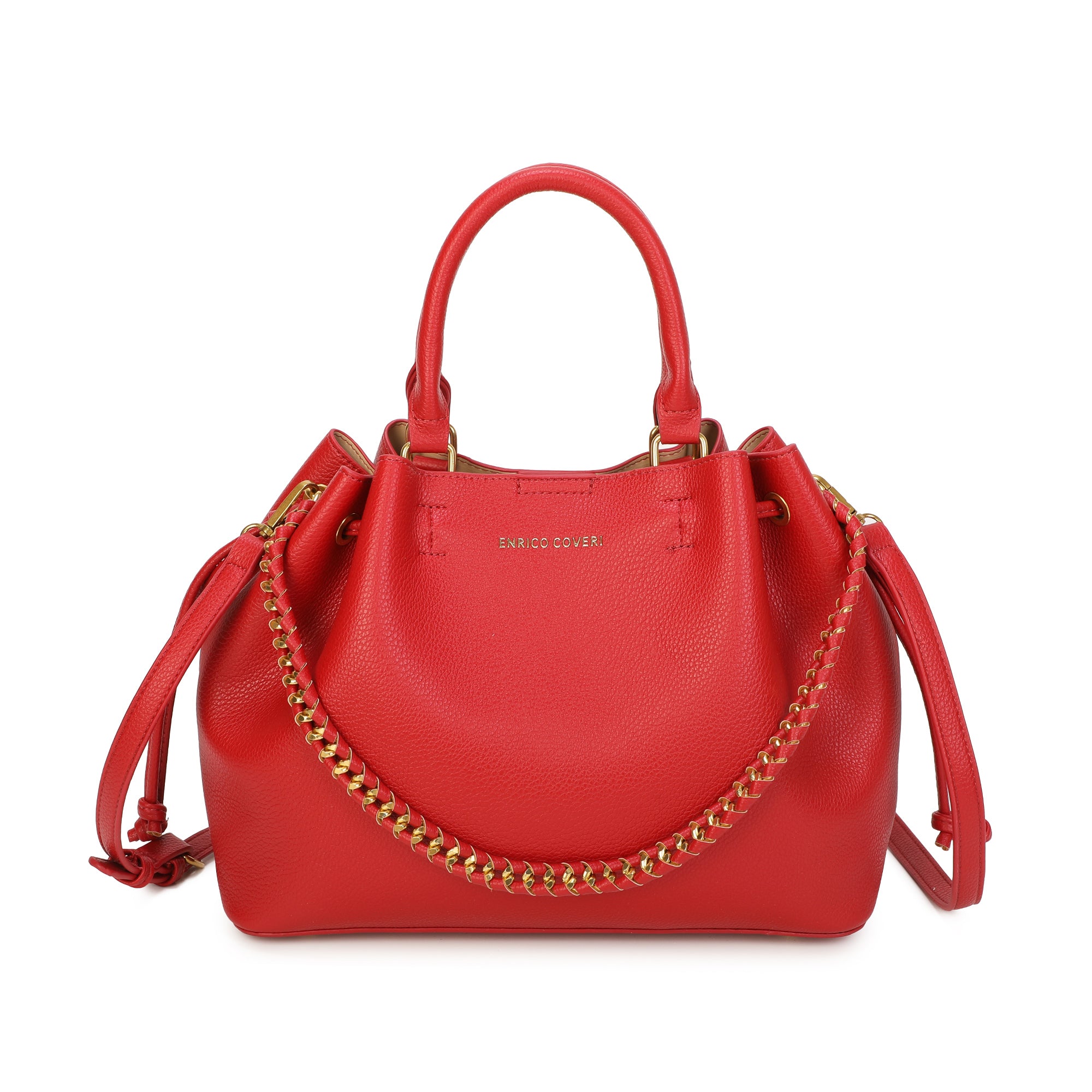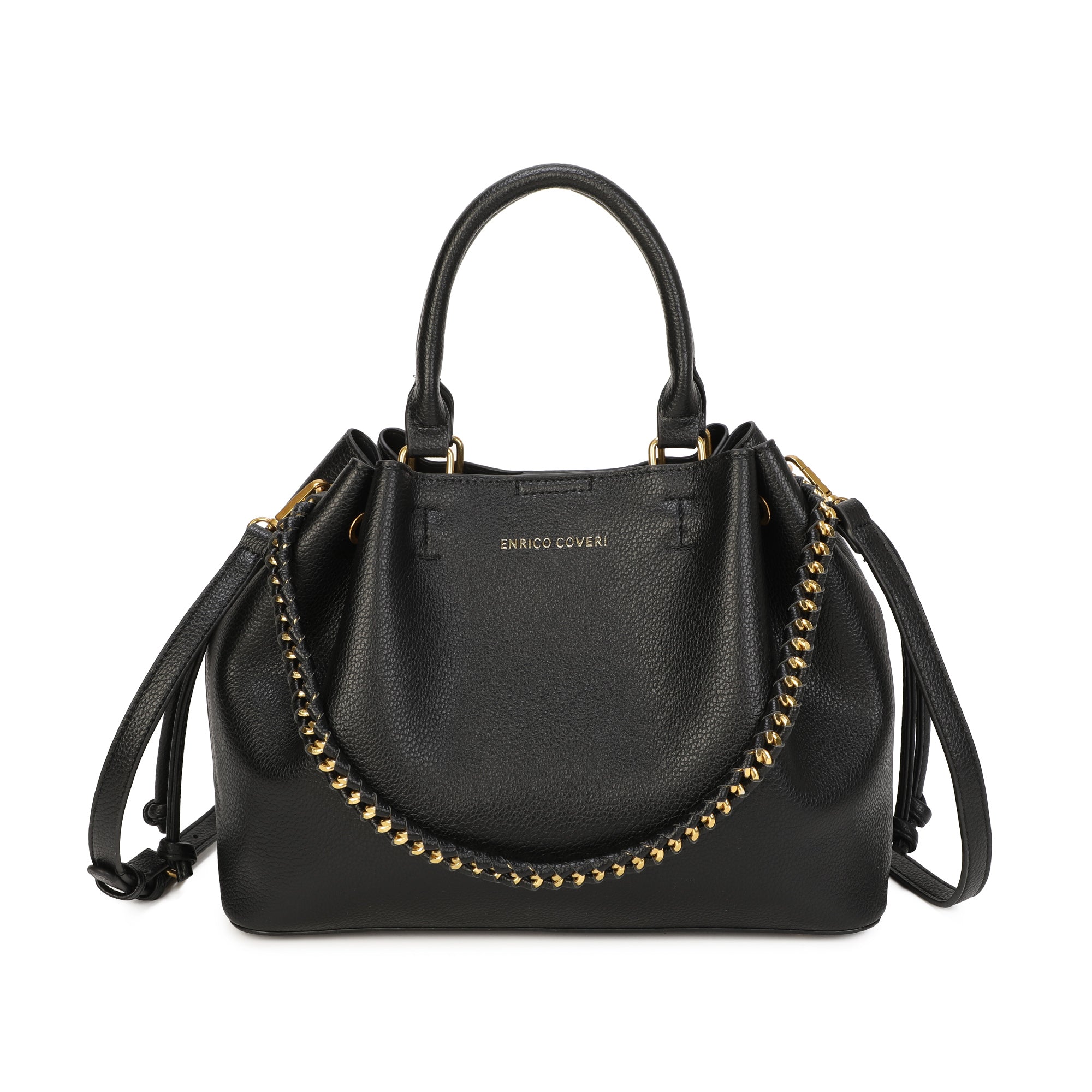 Borsa secchiello a coulisse in ecopelle con catena intrecciata Enrico Coveri EC2260